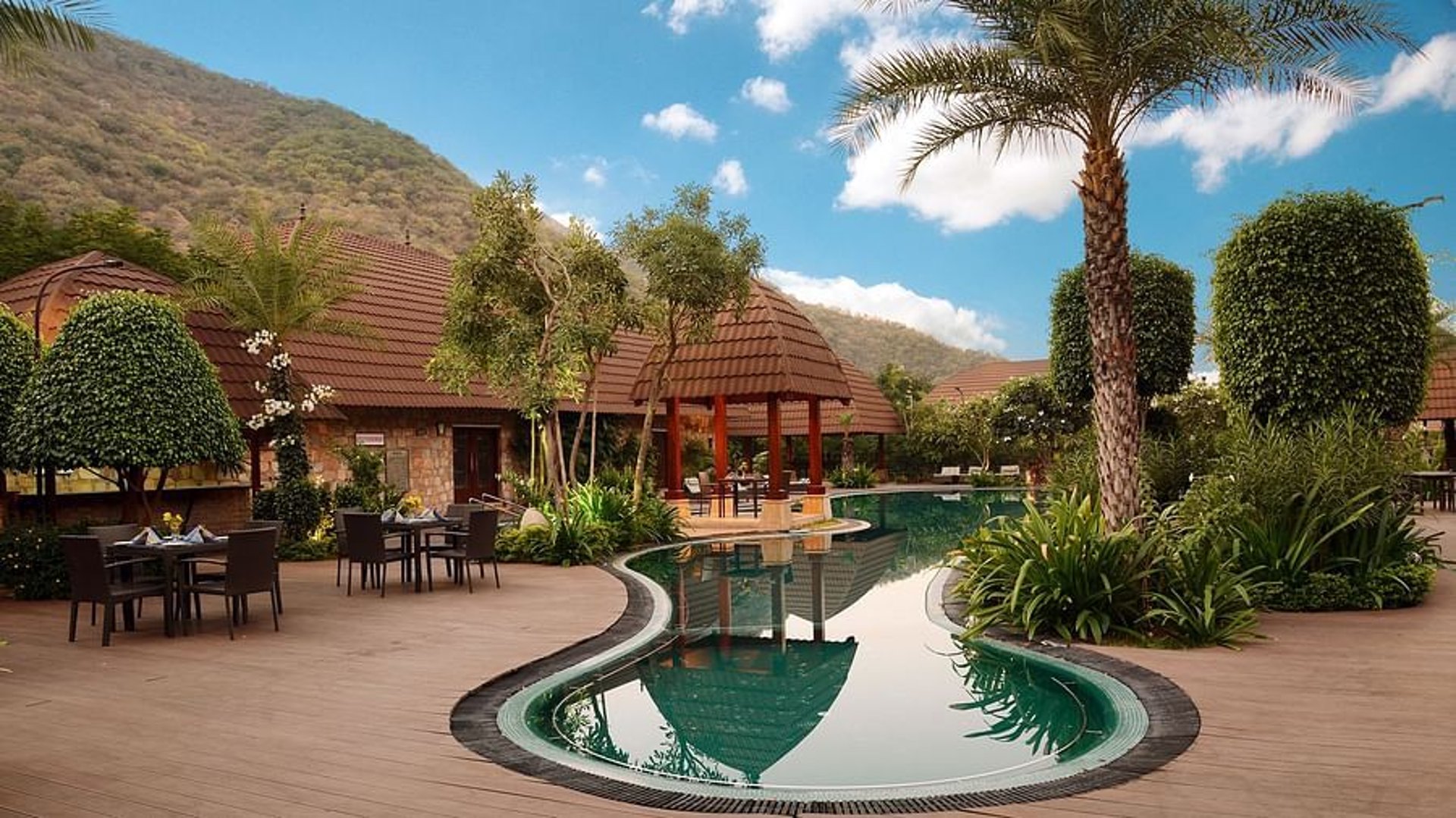 These villas in Udaipur are the most premium offering measuring 4500 sq. ft. at Ananta Udaipur. They feature 3 bedrooms with 2 double beds and a twin bed, attached to separate large living and dining spaces. With a private swimming pool and balcony, you will have the ultimate time relaxing here!