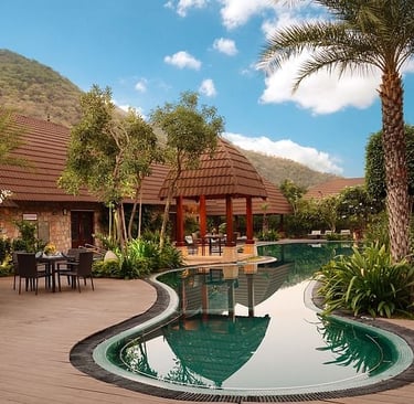 The Chairman Villa offers 4,500 sq. ft. of refined luxury for up to 10 guests. It features three elegant bedrooms with attached bathrooms, a spacious living room, a stylish powder room, and a large balcony with serene views, perfect for a memorable stay.